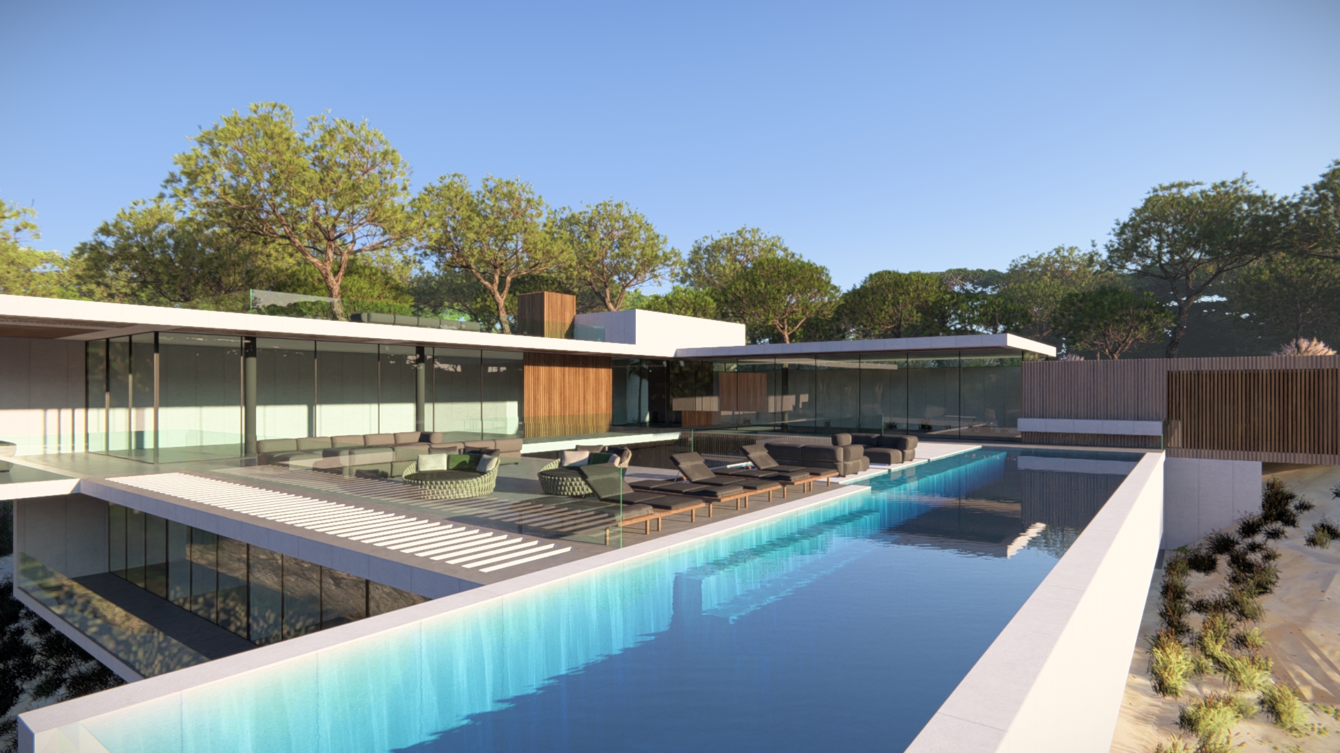 Construção de raiz de uma moradia na Quinta Patino em Cascais. Incluí piscina exterior e interior.